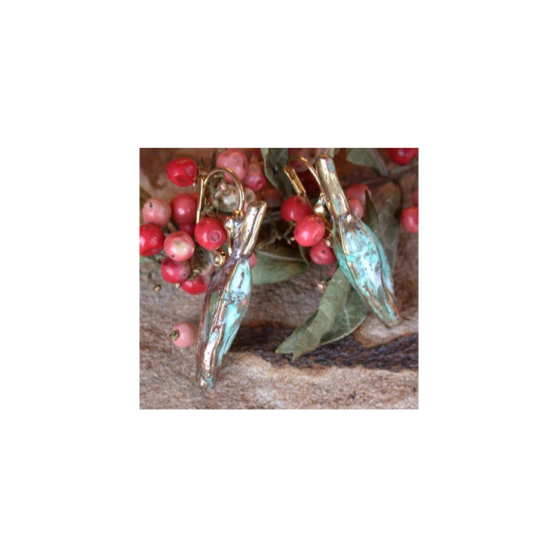 Verdigris Patina Lost Wax Cast Brass Botanicals Flower Bud Earrings