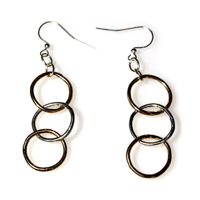 Gold Filled and Sterling Silver Wire Tri-Circle Earrings