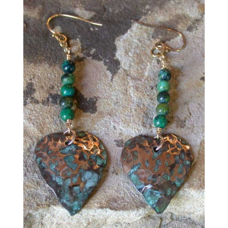 Verdigris Patina Textured... Verdigris Patina Textured Solid Brass Heart Dangle Earrings - Chrysocolla $98.00