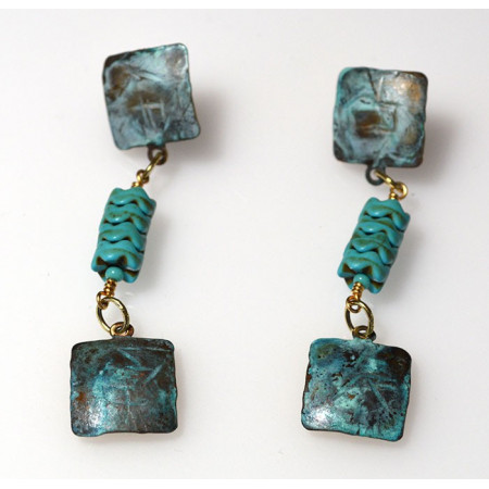 Verdigris Patina Forged... Verdigris Patina Forged Brass Textured Double Square Earrings - Turquoise $85.00